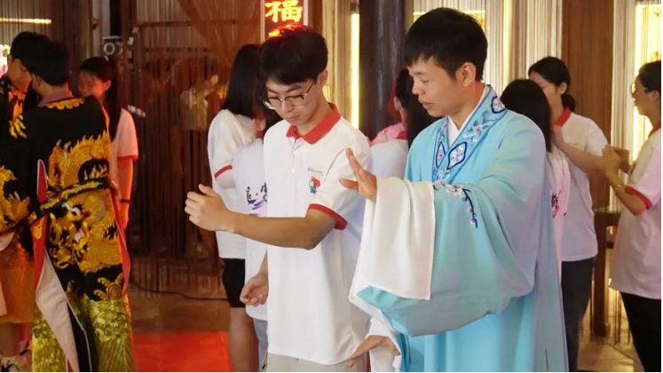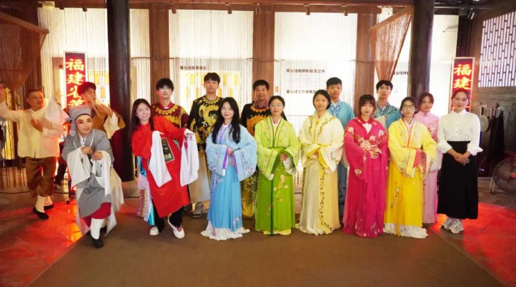 7月7日,在莆仙戏传习所里,实践队通过观看古朴优雅、别具特色的莆仙戏,感受原汁原味的地方戏曲艺术。期间,队员们还穿戴戏服,和戏剧演员学习莆仙戏表演动作,进一步体验蕴含在戏剧中的人文精神。