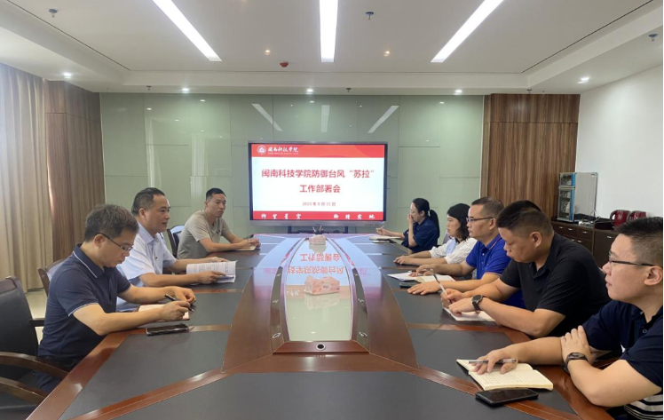 8月31日,我校召开防御第9号台风“苏拉”工作部署会。校领导周勇军、王育海,各相关职能部门、物业公司负责人参加会议。