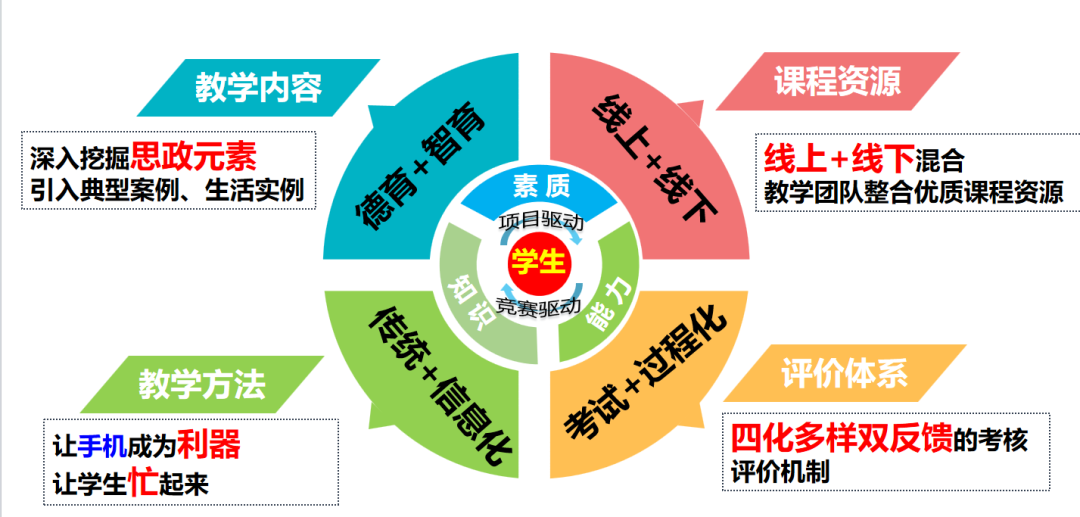 《基于学科竞赛的C语言程序设计教学体系建设方案》系统构建了“以学生为主体-项目驱动-以赛促学-以赛促教-思政科教融合”的教学理念,创设信息技术支撑的混合式合作学习环境,实现提高学生整体思维活跃度,改善育人效果。